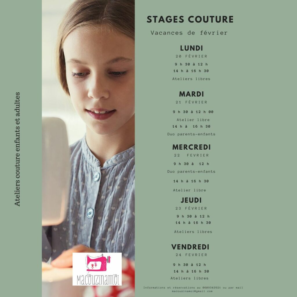 Pour les renseignements complets sur les stages enfants, c’est par ici : https://macouzinamoi.com/produit/stages-enfants-vacances-scolaires/